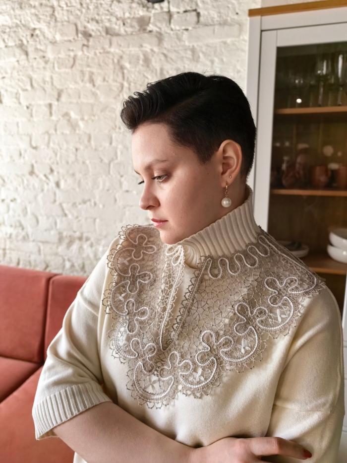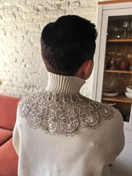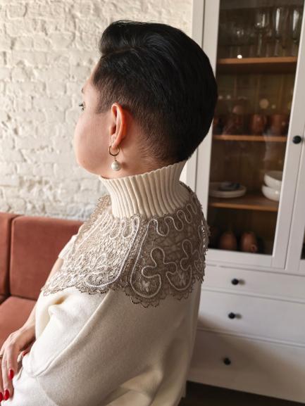 Отделка, выполненная из ручного вологодского, в классическом орнаменте трилистника, прекрасно впишется в любой образ. Благодаря закрытой форме без разделению лекга в носке и применении.