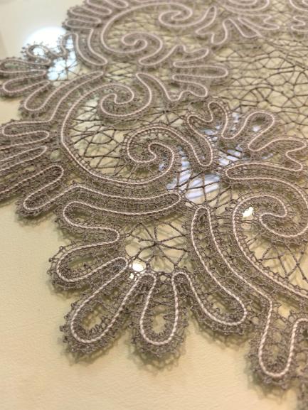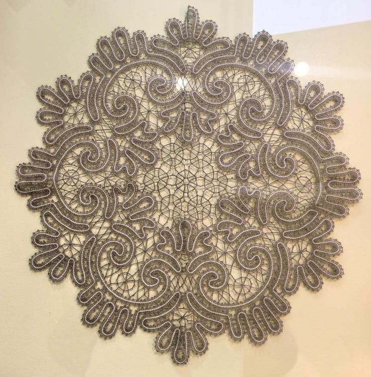 Салфетка, выполненная из ручного Вологодского кружева, орнаментом напоминает северные морозные узоры.